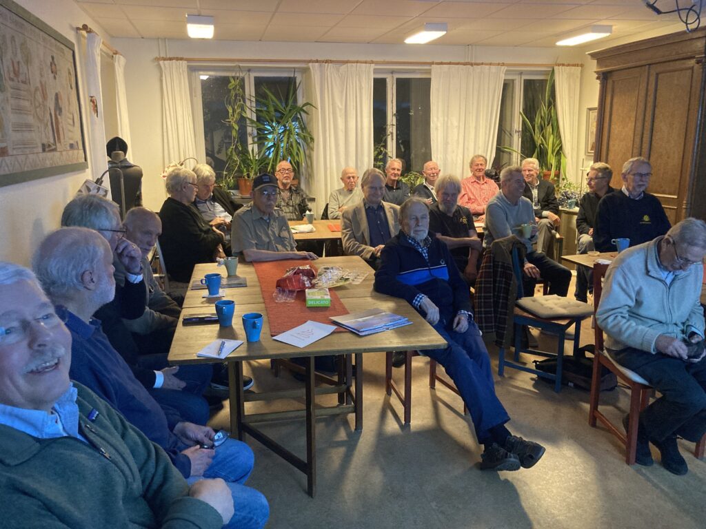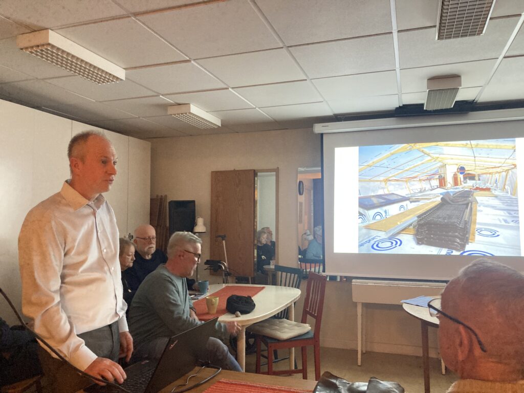 Vi har återigen bytt lokal. 30 medlemmar hittade lätt dit. Den 14 november 2025 hade vi vårt första möte på Timmermansgården och det fungerade mycket bra. Tomas Blomström berättade om renoveringen av Björkfjärdens sicklade plåttak och hela det övre däcket med tillhörande salonger styrhytt och matsal